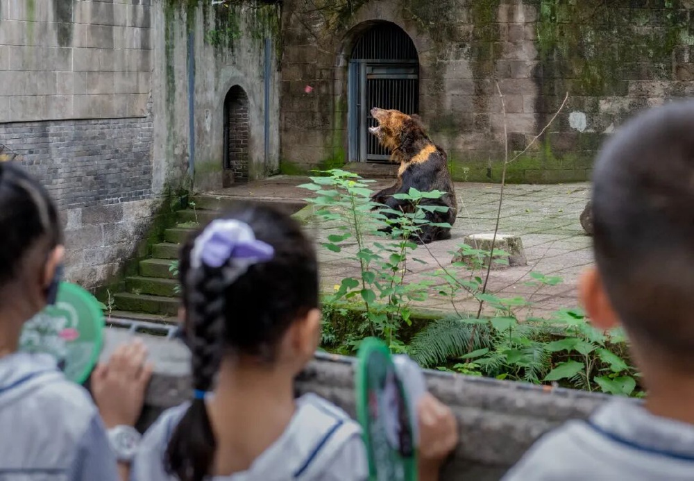▲9月18日,“2025年渝港澳青少年自然探索‘云端守候·爱护动物’公益行动”走进重庆动物园,小朋友们在观看棕熊进食。记者 张锦辉 摄/视觉重庆